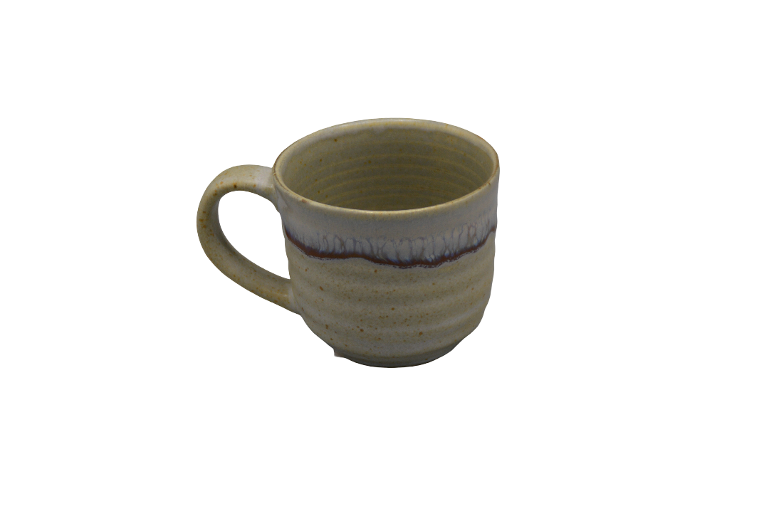 Deze mok is uitgevoerd in een zachte beige-witte kleurcombinatie en gemaakt van keramiek. Met een afmeting van 6 cm bij 7,5 cm ligt hij prettig in de hand en is hij ideaal voor koffie of thee. De rustige uitstraling maakt deze mok geschikt voor dagelijks gebruik. Prijs: €8,50.