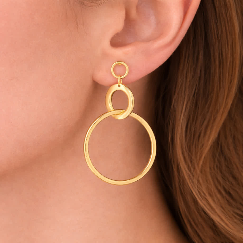 Stijlvolle WAUW oorbellen met een design van drie ringen. De goudkleurige afwerking zorgt voor een moderne en elegante uitstraling. Gemaakt van RVS, waardoor ze lichtgewicht en fijn zijn om te dragen. Een echt merkproduct dat elke outfit net dat beetje extra geeft.