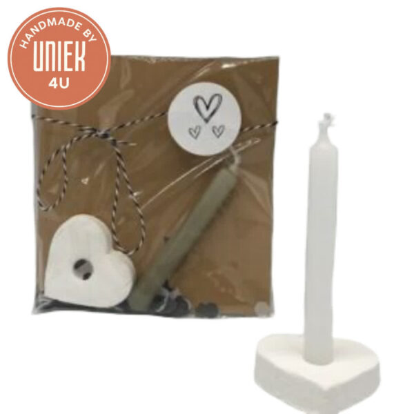 Uniek – Pakketje – Kaarshouder van Gips met kaarsje – Wit