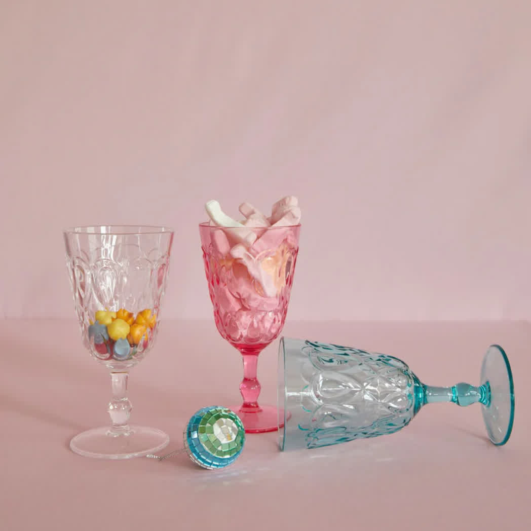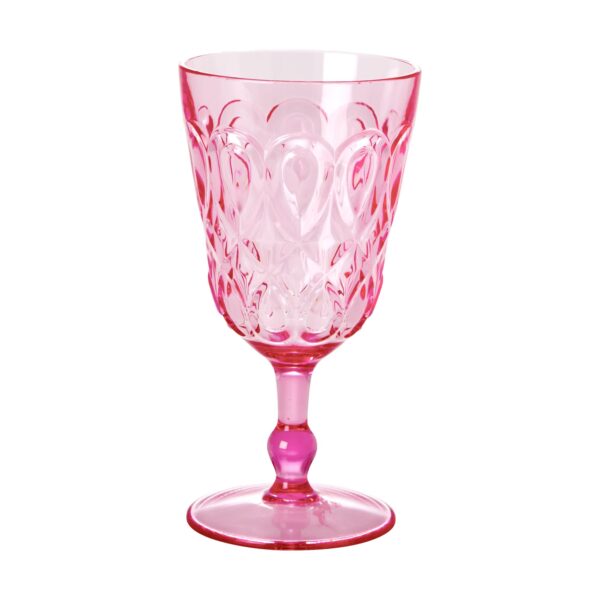Dit roze wijnglas met reliëf details van Rice is gemaakt van stevig kunststof en heeft een inhoud van 250 ml. Het glas is lichtgewicht, herbruikbaar en ideaal voor picknicks, tuinfeesten of dagelijks gebruik. Een vrolijke en praktische toevoeging aan je servies.