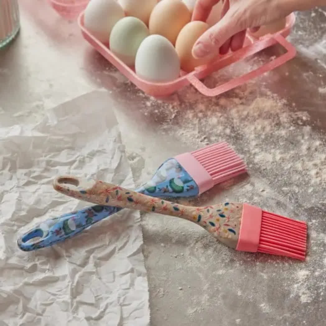 De RICE bakkwast Small Sandy Flowers is een siliconen bakkwast met een lengte van 22 cm en heeft de vorm van een kwast. De roze kwastharen worden gecombineerd met een grijze handgreep voorzien van een print met gekleurde bloemetjes. Dit merkproduct bakkwast is gemaakt van siliconen en ligt prettig in de hand tijdens het bakken en koken. Een praktische en decoratieve keukentool die perfect past in een kleurrijke keuken.