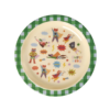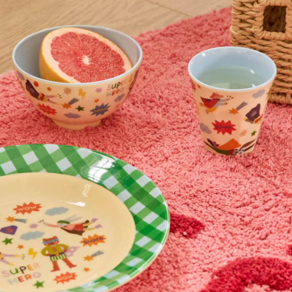 Het RICE kinderbord “Superhero” is een ronde melamineborden van 22 cm in diameter, uitgevoerd in de kleur groen. Deze merkproduct bord is duurzaam, licht van gewicht en vaatwasserbestendig, waardoor het ideaal is voor dagelijks gebruik door kinderen. Het vrolijke ontwerp maakt eten leuk en zorgt voor een kleurrijke toevoeging aan de kindertafel.