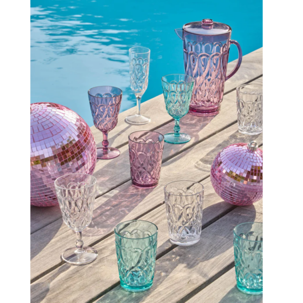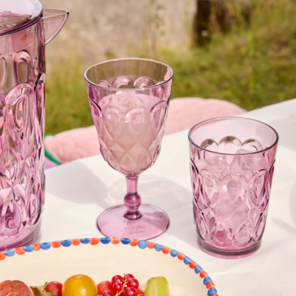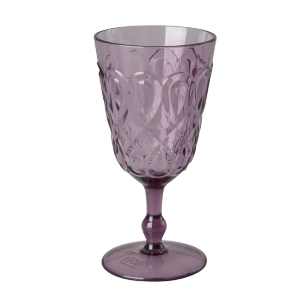 Stevig en stijlvol kunststof wijnglas van Rice in een zachte lichtpaarse kleur. Perfect voor gebruik binnen en buiten, licht van gewicht en makkelijk schoon te maken.