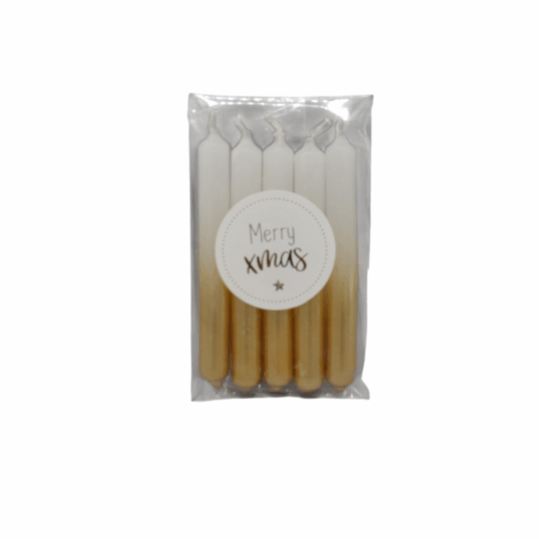 Deze witte kaarsen van Rustik Lys met goudaccenten hebben de tekst “Merry Xmas” en worden geleverd in een set van 5 stuks. Met een afmeting van 10 x 6 cm zijn ze perfect voor het sfeervol branden tijdens de feestdagen. Het elegante ontwerp en de feestelijke boodschap zorgen voor een warme en gezellige uitstraling in huis.