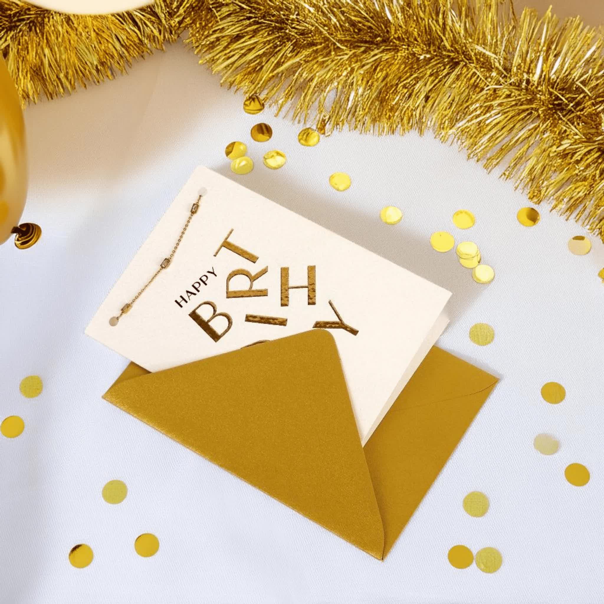 Sieradenkaart – Luxe wenskaart – happy birthday met armband – goud