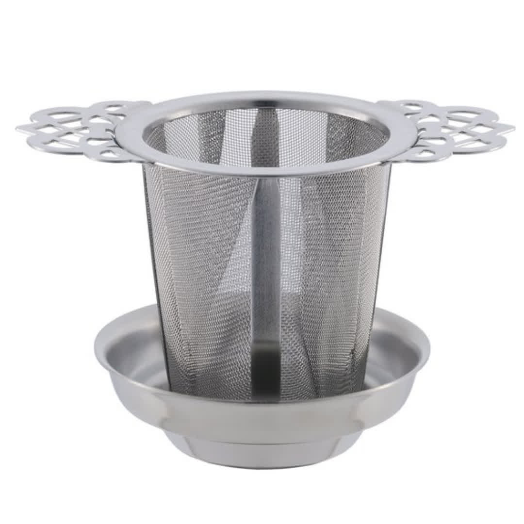 Handige thee- en koffiefilter met deksel, ideaal voor het zetten van losse thee of koffie. Gemaakt van roestvrij staal in een metalen kleur en uitgevoerd in een ronde vorm. De filter heeft een afmeting van 11,2 x 6,5 x 6,7 cm en is voorzien van een decoratief handvat voor extra gebruiksgemak. Wordt geleverd verpakt in een doosje, ook leuk om cadeau te geven.