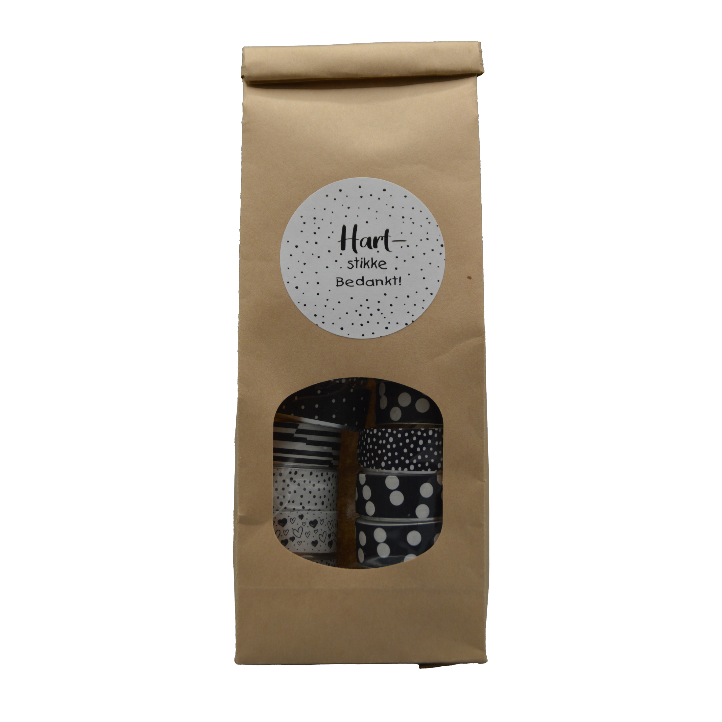 Verras iemand op een originele manier met deze handgemaakte cadeauverpakking van Uniek. De lichtbruine papieren zak (23 x 9 cm) draagt de tekst “Hart-stikke Bedankt!” en bevat theelichten in diverse dessins. Een warm en sfeervol gebaar om dankjewel te zeggen.