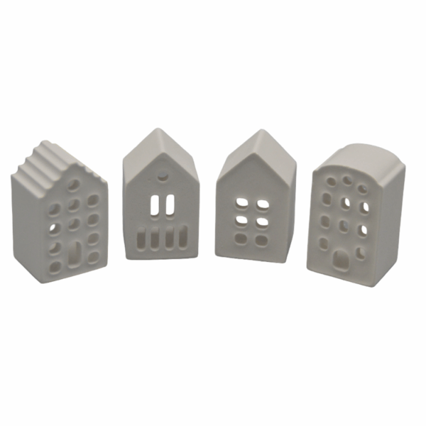 Deze handgemaakte grachtenpandjes van Uniek zijn een charmante toevoeging aan je interieur. Gemaakt van wit gips en elk met een uniek ontwerp. Met een afmeting van 3 x 5 cm passen ze perfect op een plank, vensterbank of in een kerst- of miniatuurdorp. Leuk om te verzamelen of cadeau te geven.