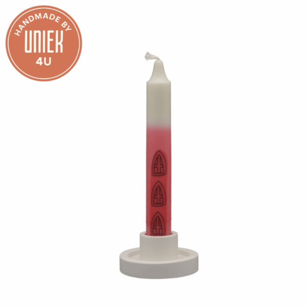De Sinterklaaskaars van Uniek4u is uitgevoerd in rood en voorzien van een patroon van een mijter. Deze kaars brengt een warme en feestelijke sfeer tijdens pakjesavond en past perfect bij het sinterklaasthema. Ideaal als decoratie of om cadeau te geven.