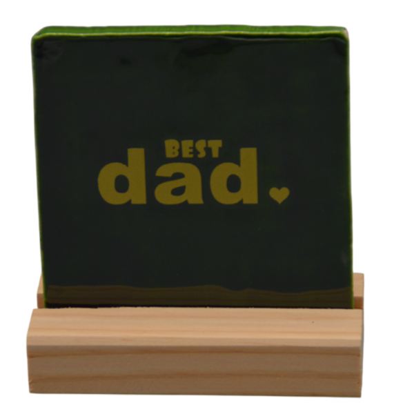 Stoer en stijlvol keramieken tegeltje in een frisse groene kleur met de tekst “Best dad”. Het vierkante formaat van 10 x 10 cm maakt het perfect als klein decoratief accent op een plank, bureau of aan de muur. Een leuk en betekenisvol cadeautje voor elke vader.