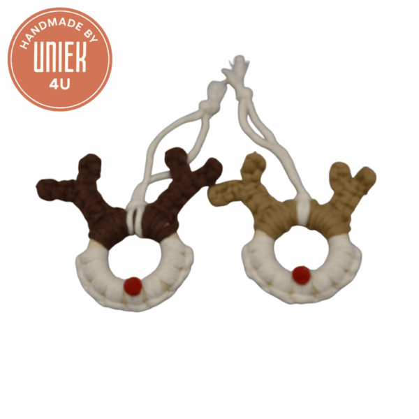 Het handgemaakte rendier door Uniek is vervaardigd met macramé en brengt een natuurlijke, sfeervolle uitstraling in huis. Dit decoratieve rendier is perfect als kerstdecoratie of als charmant accent in een winters interieur. Een stijlvol, ambachtelijk product met een warme, handgemaakte touch.
