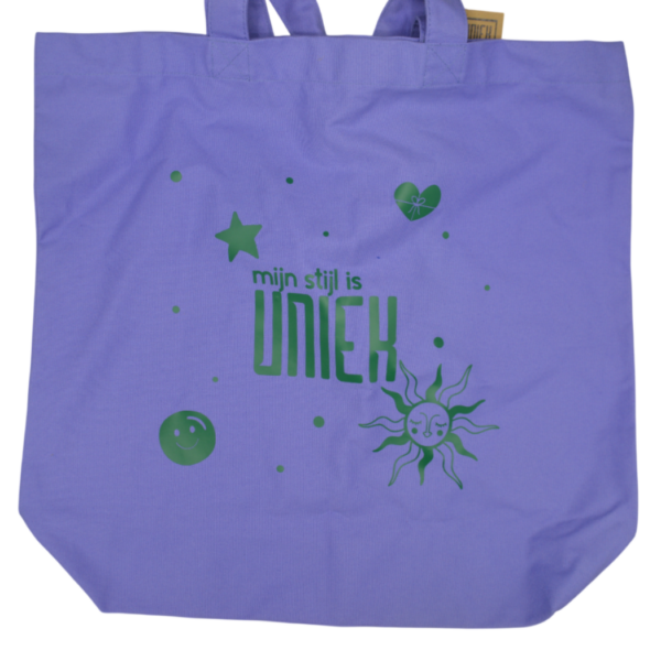 Uniek4U – tas met opdruk – Mijn stijl is Uniek – paars