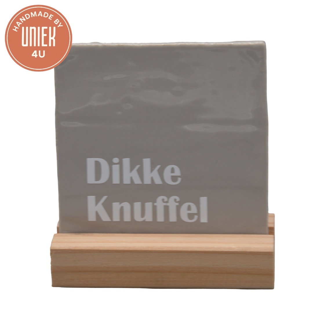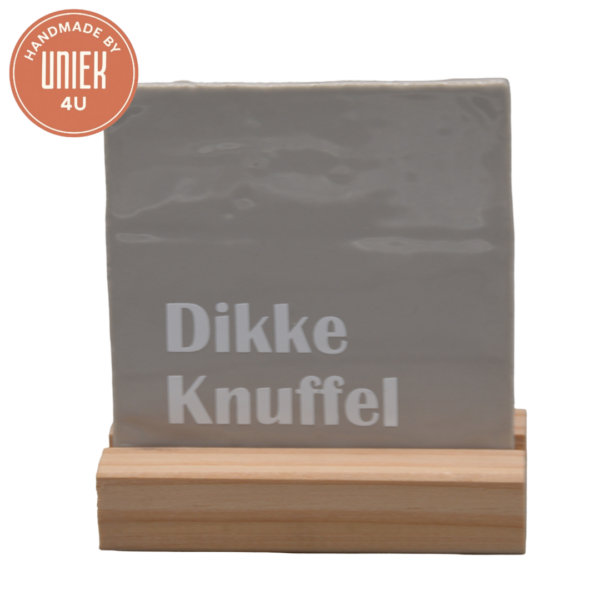Dit tegeltje van Uniek4U is een vierkant tegeltje in grijs, gemaakt van keramiek. Met een afmeting van 10 x 10 cm heeft dit handgemaakte tegeltje een compact formaat en is het voorzien van de tekst “Dikke Knuffel” in wit. Het keramische materiaal zorgt voor een stevige en stijlvolle afwerking. Ideaal als decoratief item of als liefdevol en persoonlijk cadeau.