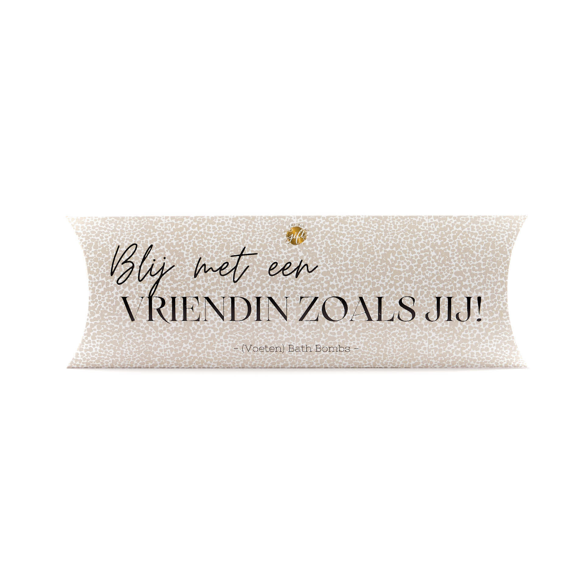 The Big Gifts – Bath Bombs – Blij met een vriendin zoals jij! – Wit met Grijs figuurtjes met Zwart tekst!