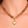 Mooie ketting van WAUW met bruine kralen en een goudkleurig hartje als subtiel detail. Gemaakt van kunststof kralen in combinatie met roestvrij staal. De ketting heeft een lengte van 21 cm en is leuk om solo te dragen of te combineren met andere kettingen.