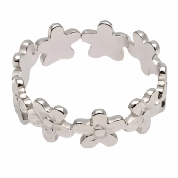 Vrolijk en verfijnd: deze ring met margriet (daisy) brengt een zomerse touch aan je look. Gemaakt van stainless steel, dus hij blijft glanzend en roestvrij. De bloem staat symbool voor puurheid en frisheid – een perfect cadeau of gewoon voor jezelf. Tijdloos en charmant!