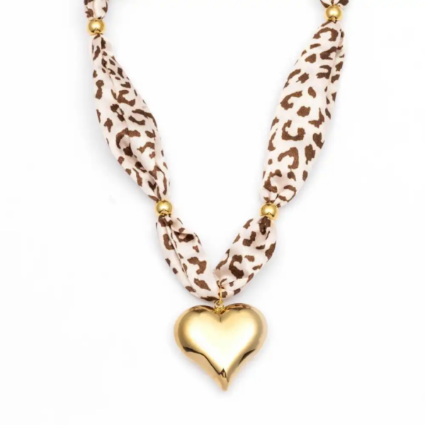 WAUW – gouden hart met stoffen ketting in panterprint – goud