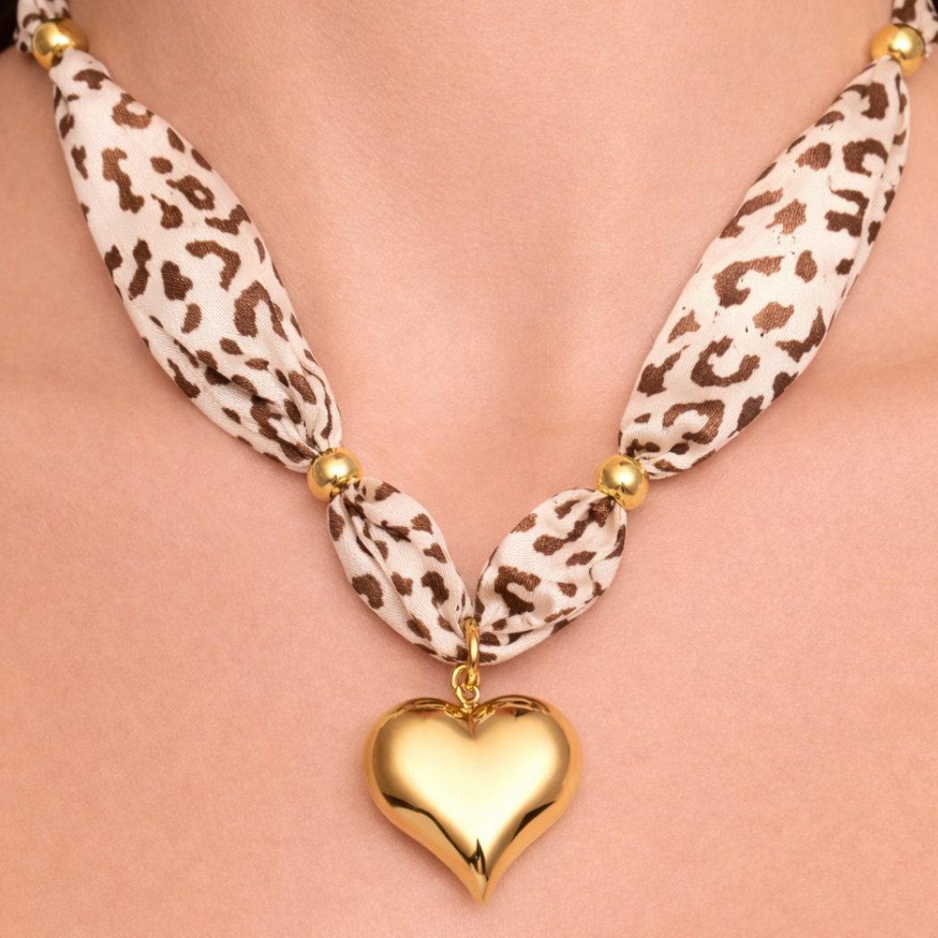 WAUW – gouden hart met stoffen ketting in panterprint – goud