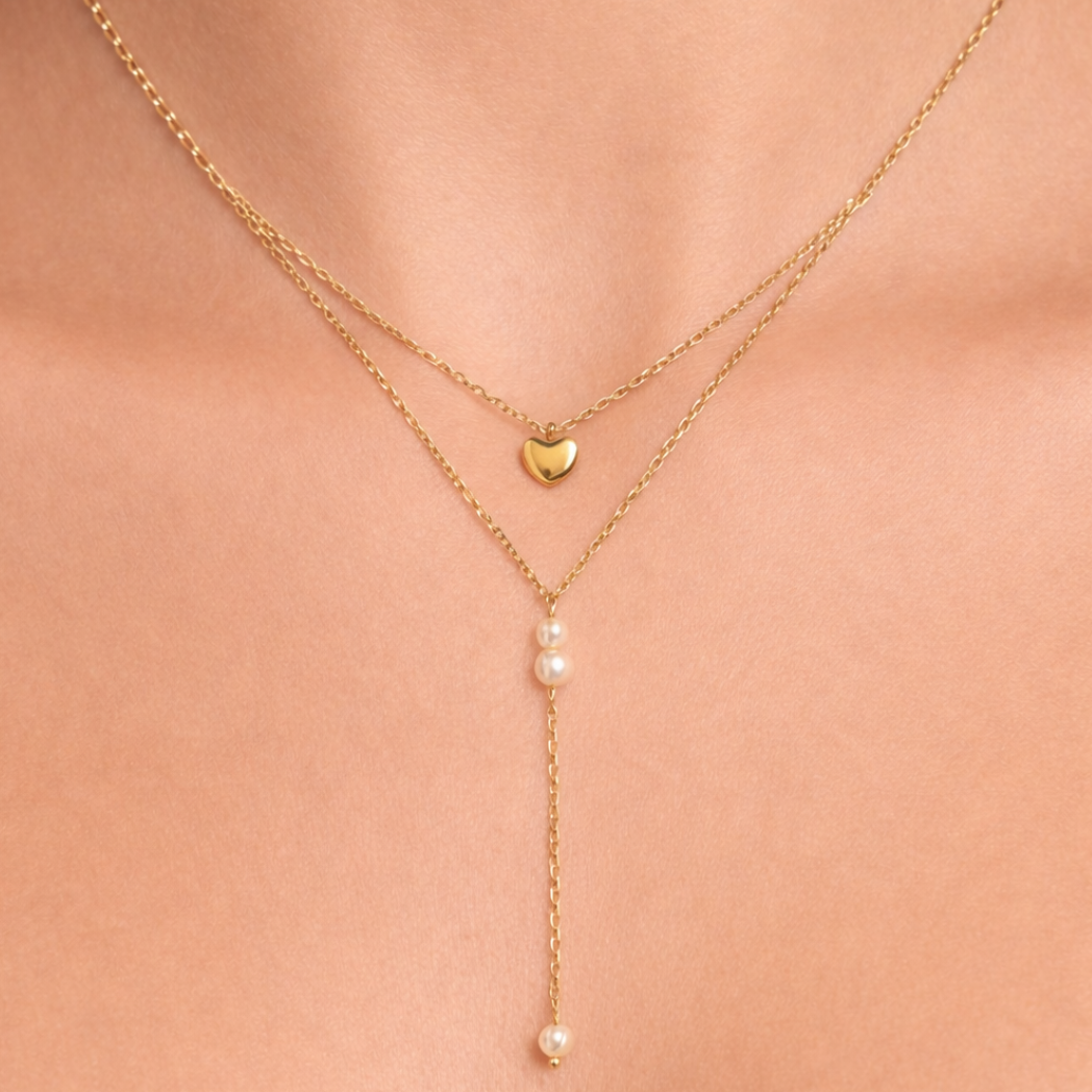 Deze elegante Wauw ketting is gemaakt van roestvrij staal en combineert een goudkleurig hartje met drie subtiele witte kralen. Het tijdloze design maakt deze ketting een perfecte aanvulling op zowel een casual als een chique outfit. Dankzij het duurzame materiaal blijft de ketting mooi en stijlvol bij dagelijks gebruik. Een sieraad dat liefde en verfijning uitstraalt.