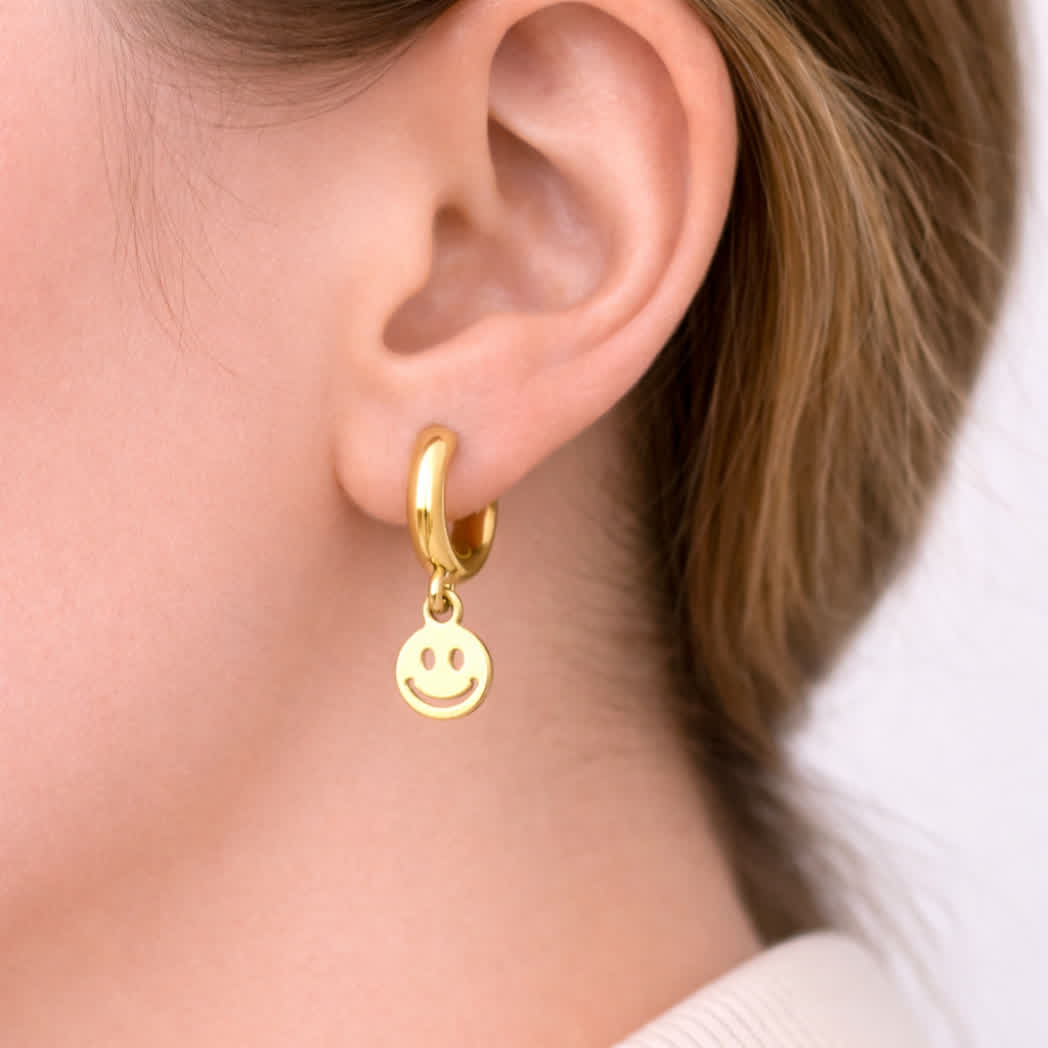 Vrolijke oorbellen van WAUW met een speels smiley-design. Gemaakt van premium stainless steel met een goudkleurige afwerking. Compact van formaat (2 x 0,8 cm) en perfect om je outfit een leuke, positieve touch te geven. Geschikt voor dagelijks gebruik.