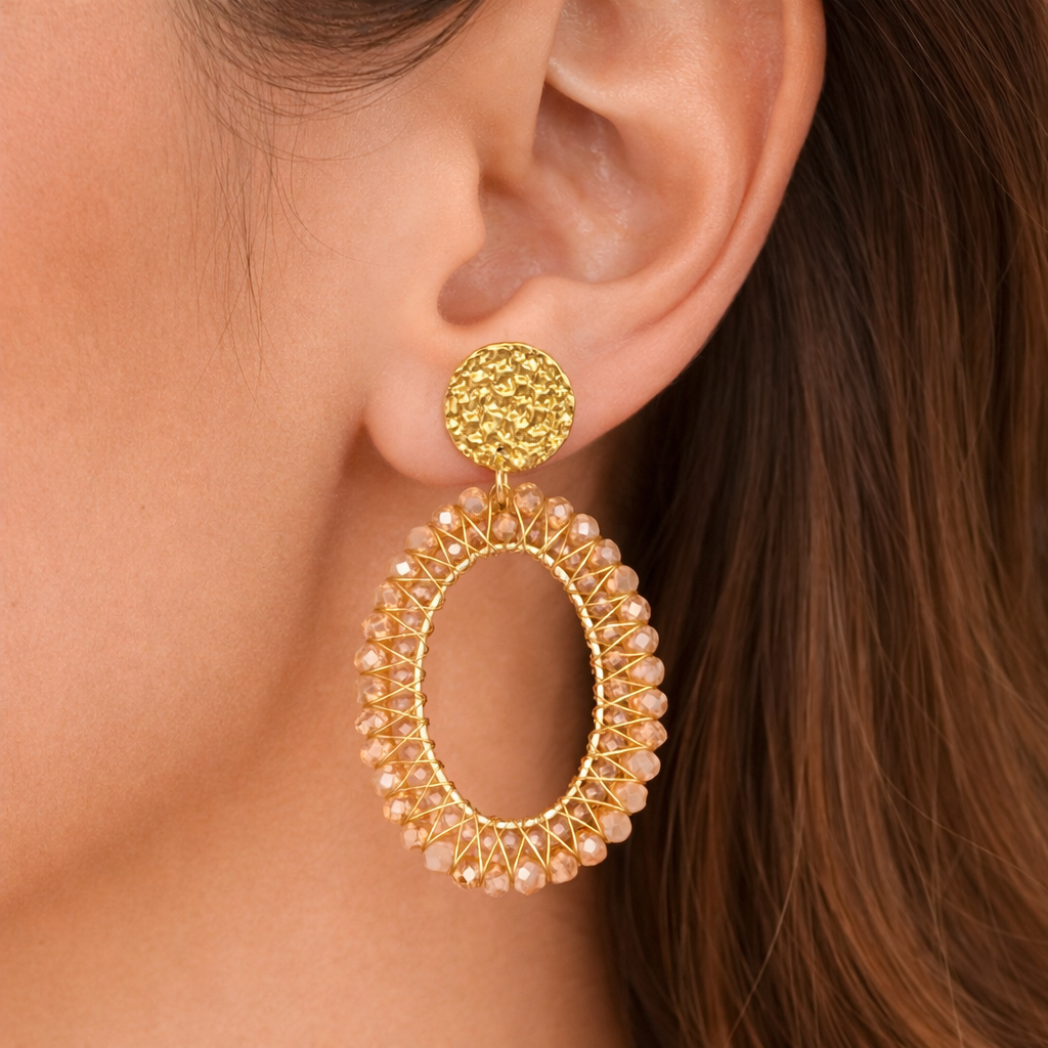 Deze stijlvolle Wauw oorbellen combineren wit, bruin en lichtbruin voor een warme en elegante uitstraling. De oorbellen zijn gemaakt van roestvrij staal en afgewerkt met fijne steentjes die prachtig glanzen. Met een afmeting van 3,5 x 6 cm vallen ze mooi op zonder te zwaar te zijn. Perfect om je look een natuurlijke en trendy touch te geven.