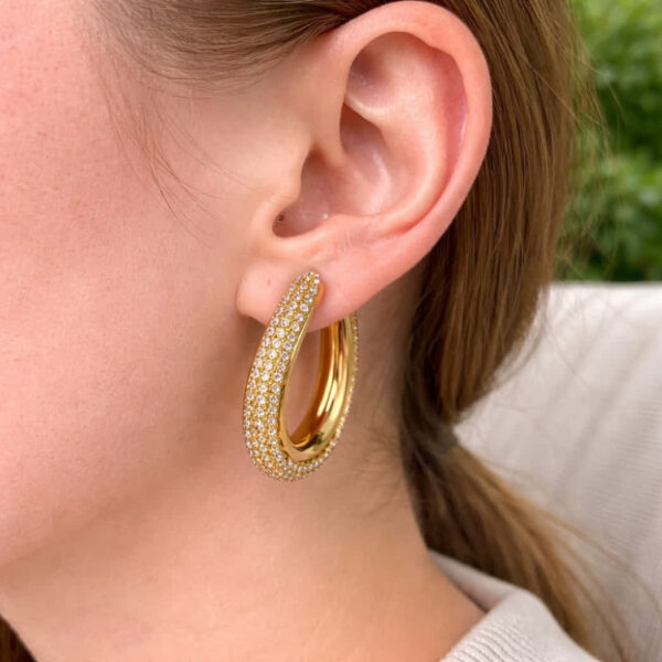 Stijlvolle oorhangers van het merk WAUW, uitgevoerd in een moderne halve cirkel vorm. De oorbellen zijn gemaakt van roestvrij staal en hebben een goudkleurige afwerking, waardoor ze tijdloos en makkelijk te combineren zijn. Met een lengte van 4 cm vallen ze mooi op zonder te zwaar te zijn. Worden geleverd in een plastic zakje. Perfect voor zowel dagelijks gebruik als een feestelijke look.