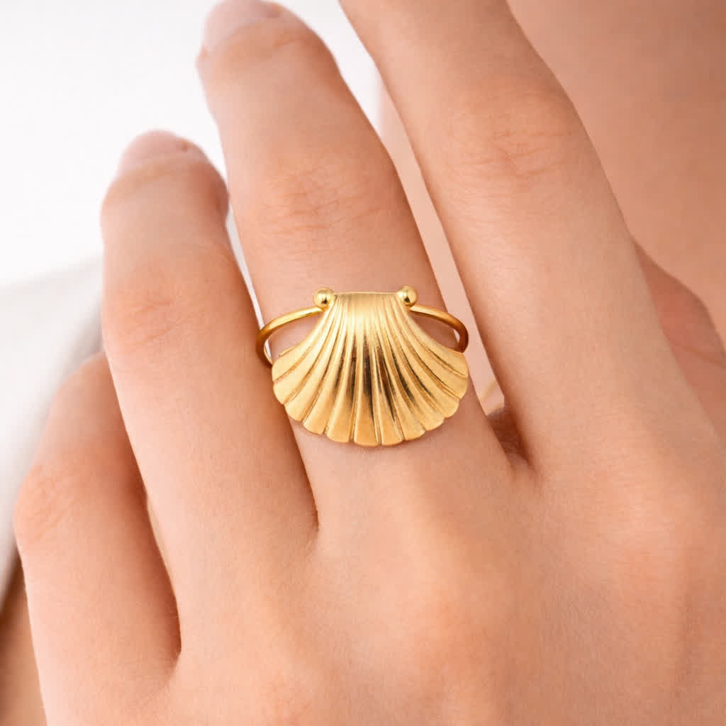 Breng de zomer bij je met de WAUW Ring met schelp! Deze stijlvolle ring is gemaakt van roestvrij staal en heeft een goudkleurige afwerking. De echte schelp in het ontwerp geeft je direct dat fijne beach vibe-gevoel. Perfect als sieraad voor iedereen die van de zee en zon houdt. Draag hem solo of combineer met andere sieraden voor een speelse look!